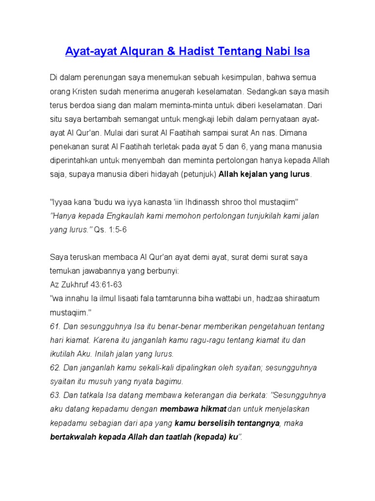 Ayat Ayat Alquran Hadist Tentang Kebenaran Nabi Isa Pdf
